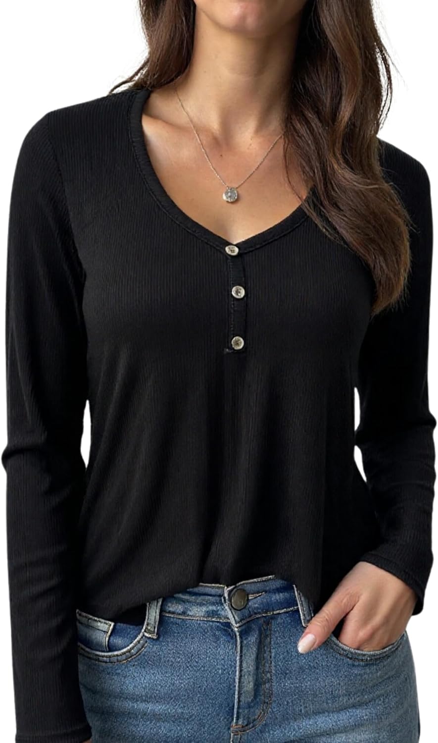 MakeMeChic Women's Sleeveless Henley Shirt Button Down Crew Neck Fitted Tee Tops