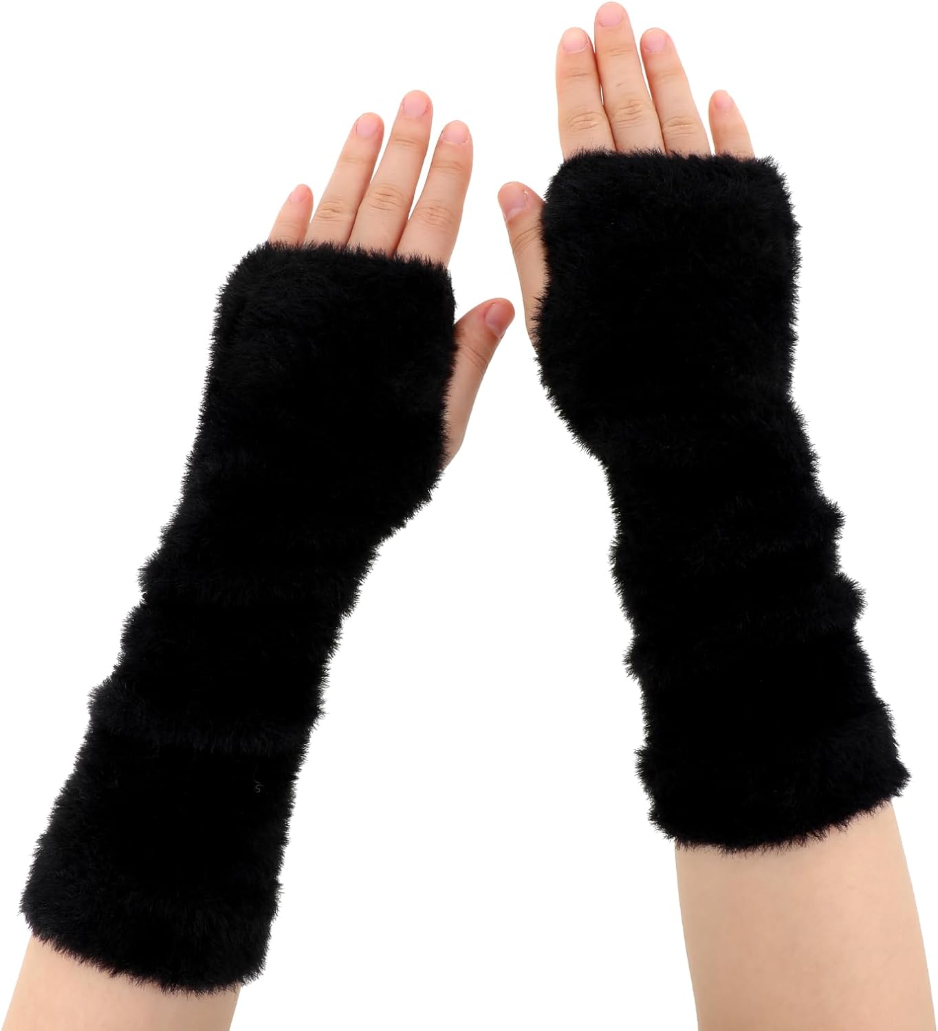1 Pc Fur Arm Warmers, Black Fingerless Gloves Women, Long Hairy Gloves for The Wrist for Arm Warmth, Fingerless Gloves