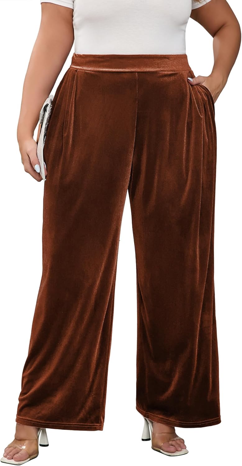 KOJOOIN Women Plus Size Velvet Pants Long Wide Leg Trousers for Women Elastic Waist Casual Trouser
