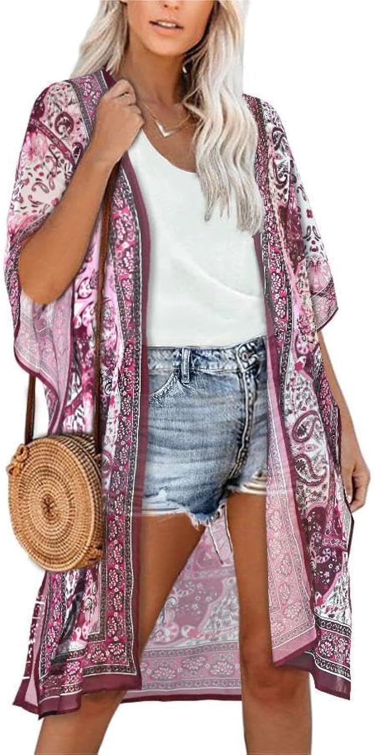 Women's Kimono Beach Cover up for Summer Bathing Suits Cardigans Casual Loose Swimwear