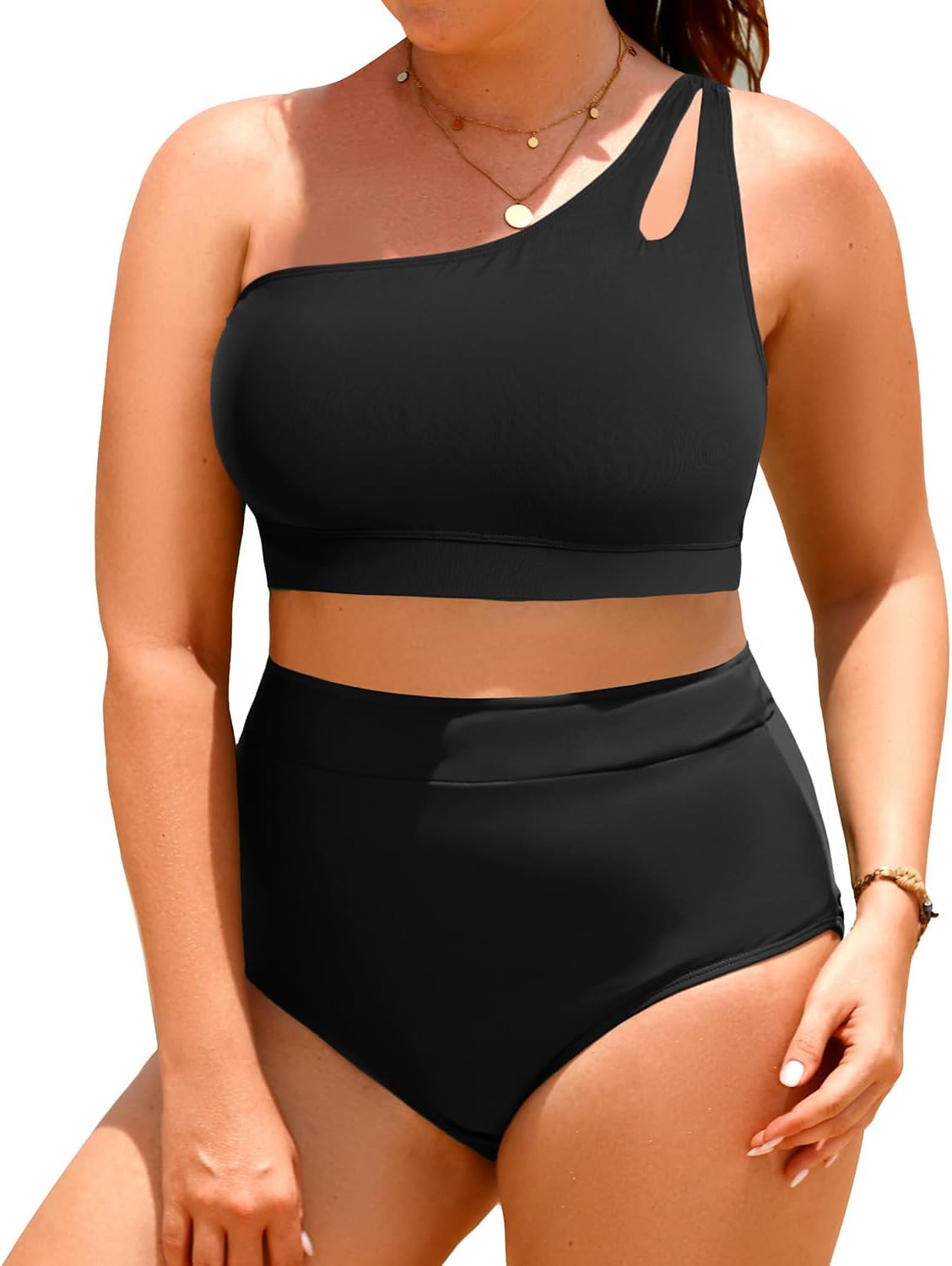 Tempt Me Plus Size High Waisted Bikini Set for Women Two Piece One Shoulder Swimsuit Keyhole Bathing Suits