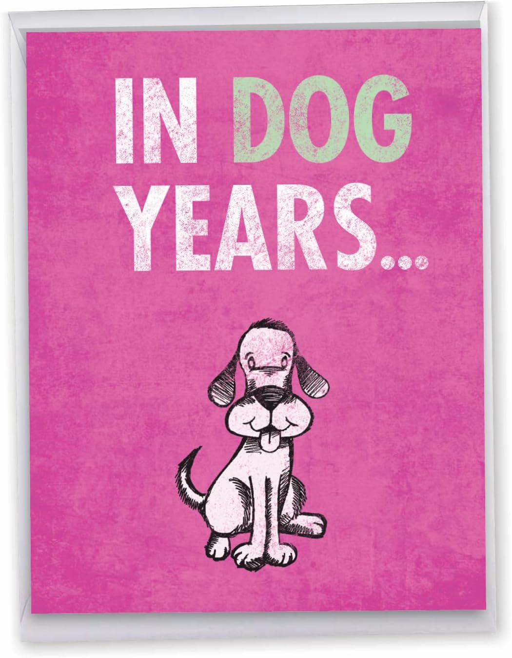 NobleWorks - 1 Funny Jumbo Birthday Greeting Card (8.5 x 11 Inch) - Cute Animal Humor for Birthday, Large Card - Dog Years J2573BDG