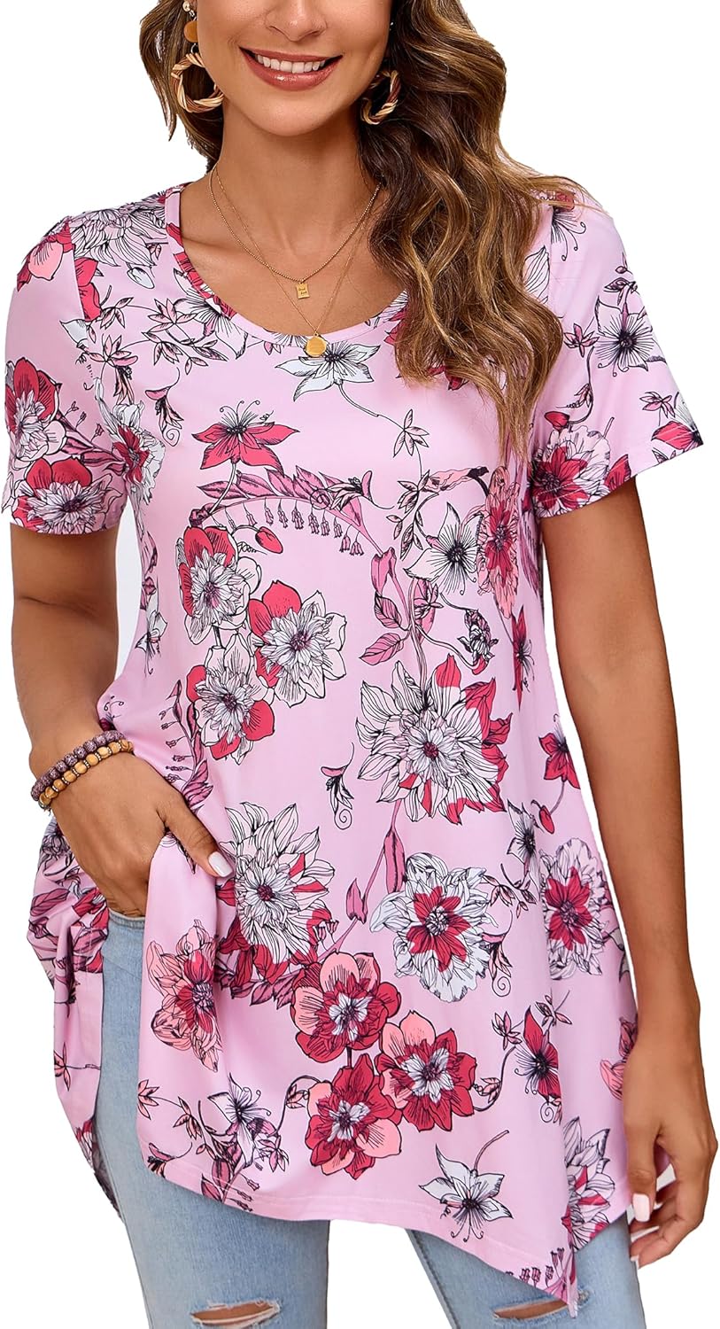 ENMAIN Tunic Tops for Women Plus Size Short Sleeve Top Loose Fit Dressy Casual Swing Summer Tunics Tops to Wear with Leggings