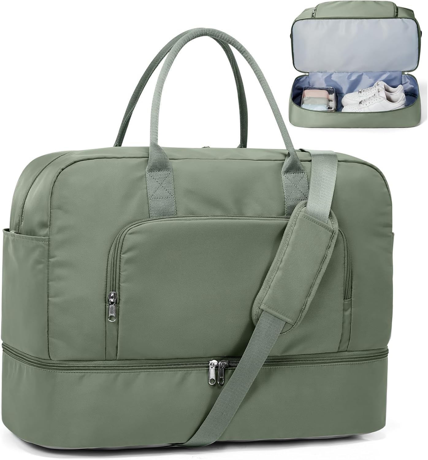 Weekender Bags for Women, Travel Duffel Overnight Carry On Weekend Bag with Shoes Compartment,Olive Green