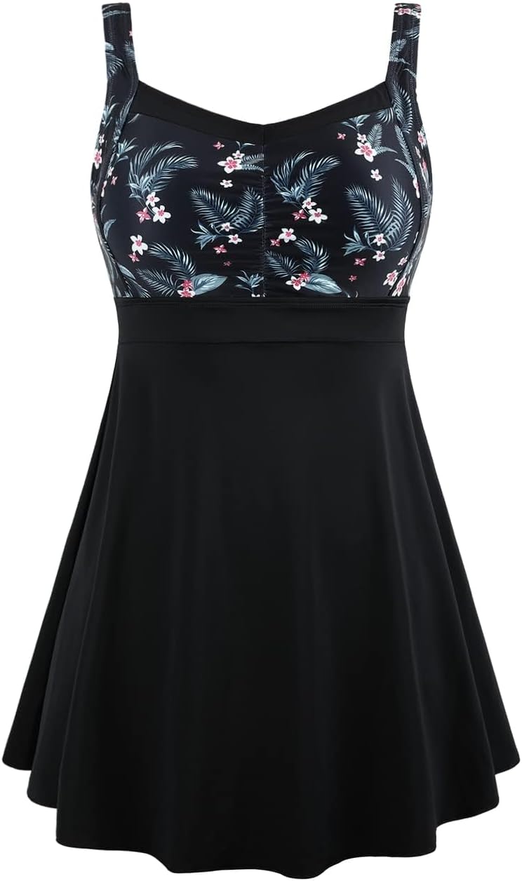 Septangle Vintage One Piece Swimdress Slimming Tummy Control Shaping Swimsuit Bathing Suit
