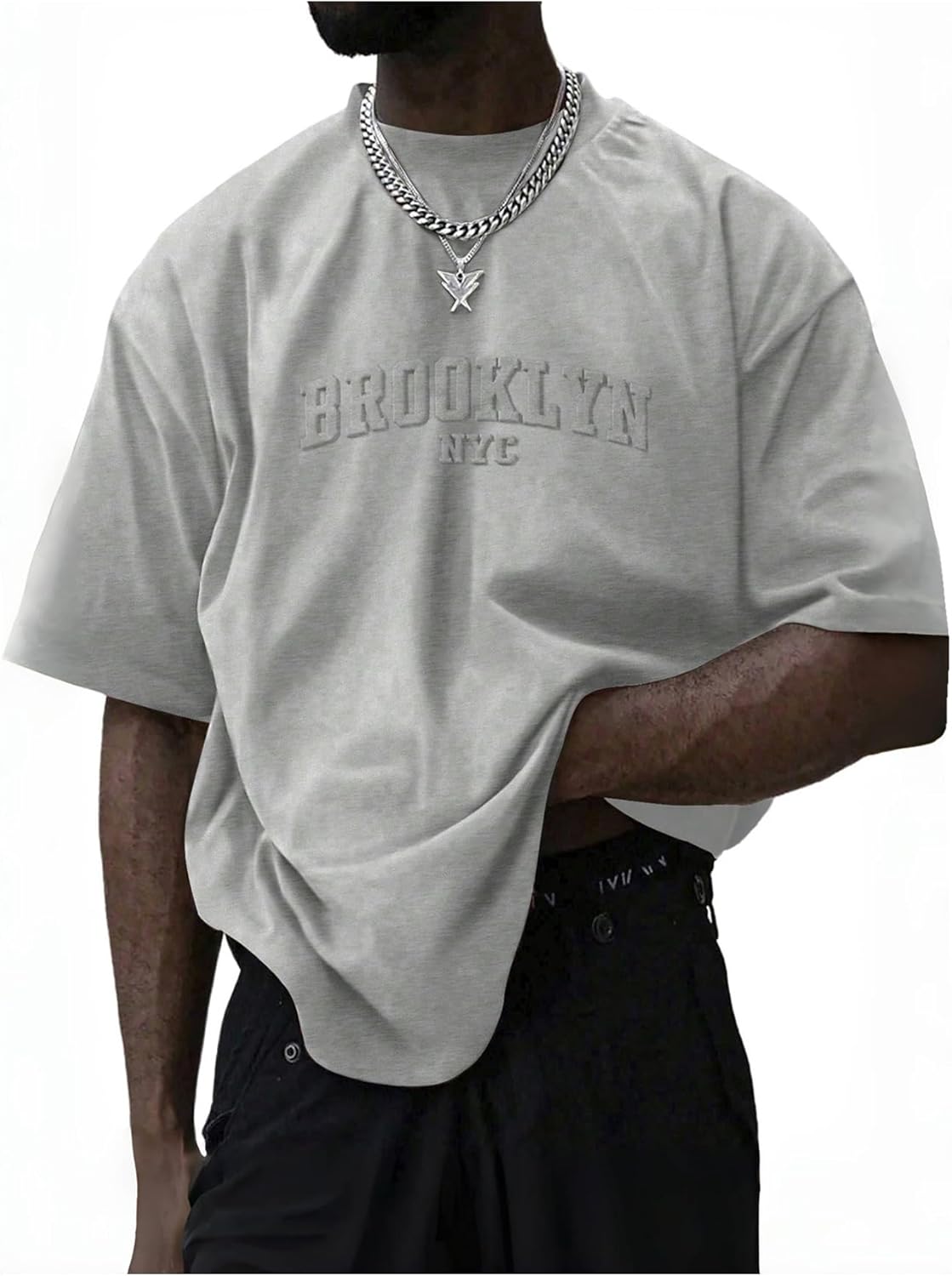 GORGLITTER Men's Oversized T Shirt Letter Graphic Short Sleeve Drop Shoulder Crewneck Tee Tops