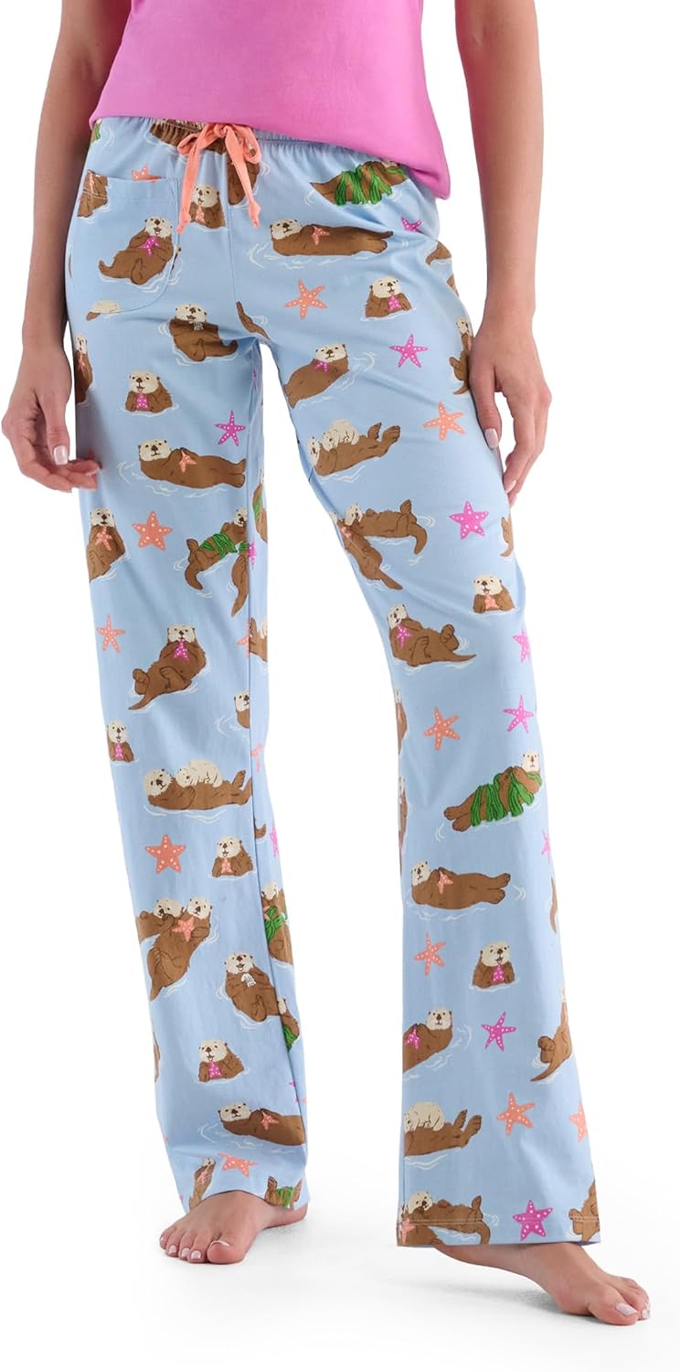 Little Blue House Women's Jersey Pajama Pants, Happy Otters, X-Large