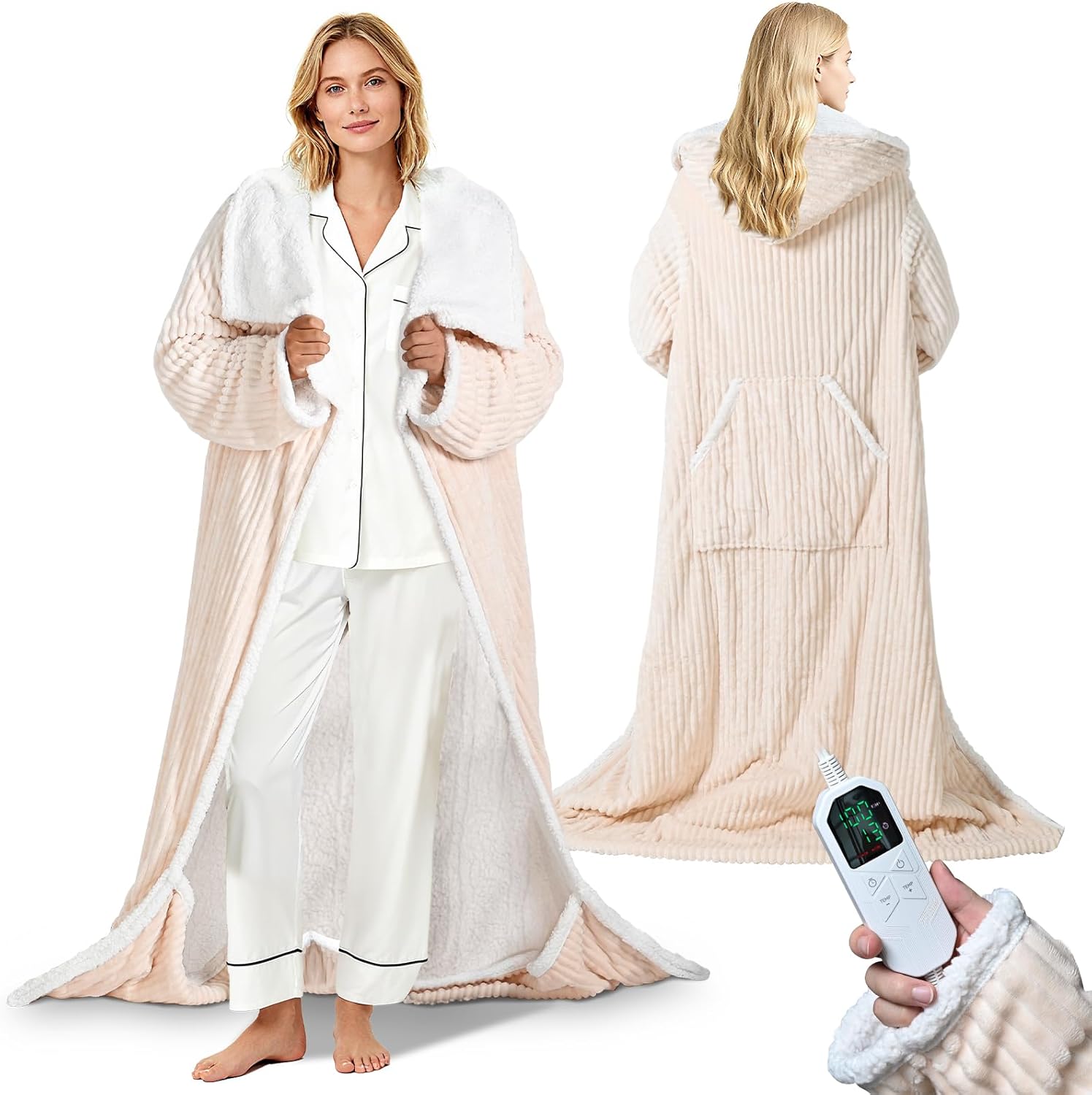 Electric Wearable Blanket with Foot Pocket, Heated Throw Blankets for Women, Snuggle Shawl Wraps with Sleeves