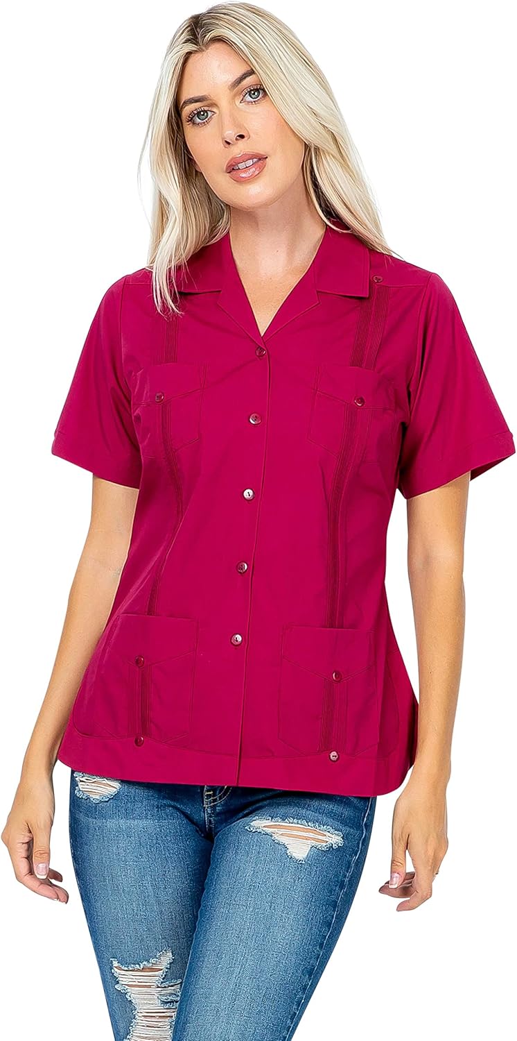 Mojito Collection Women's Cotton Blend Classic Short Sleeve 4-Pocket Guayabera
