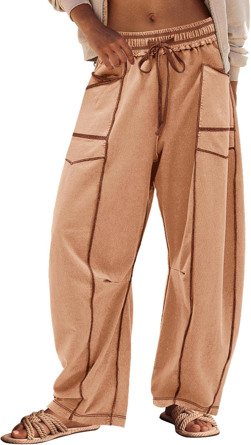 Panadila Womens Barrel Pants Drawstring Wide Leg Sweatpants Baggy Summer Lounge Pants Casual Beach Trousers