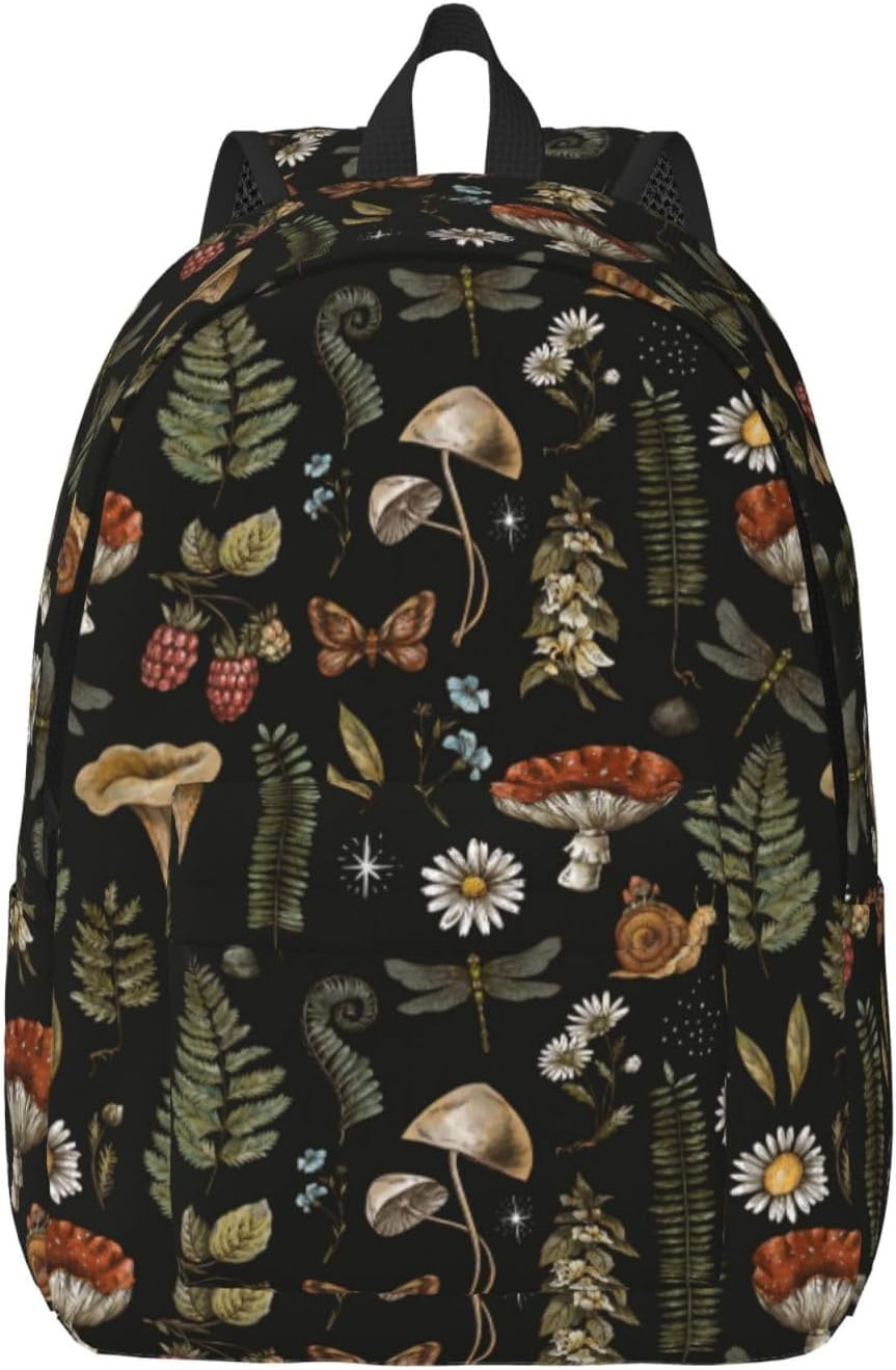 Vintage Mushroom Witchcraft Plant Backpack for Girls Boys Women Lightweight Canvas Bookbag Casual Daypack for Travel Outdoor Camping, 17 Inch