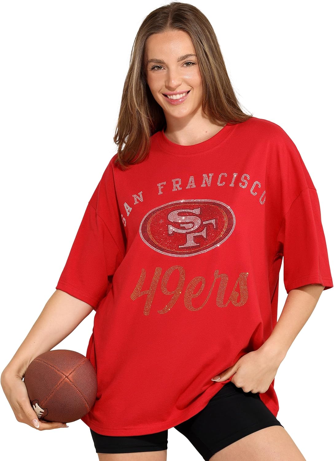 FOCO NFL Womens NFL Team Rhinestone Logo Shirt Oversized T-Shirt