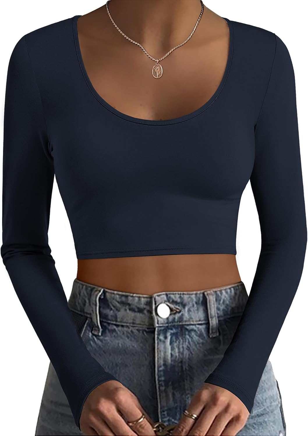 Ekouaer Long Sleeve Crop Tops for Women Scroop Neck Lightweight Basic Base Layer Thermal Undershirts Shirts