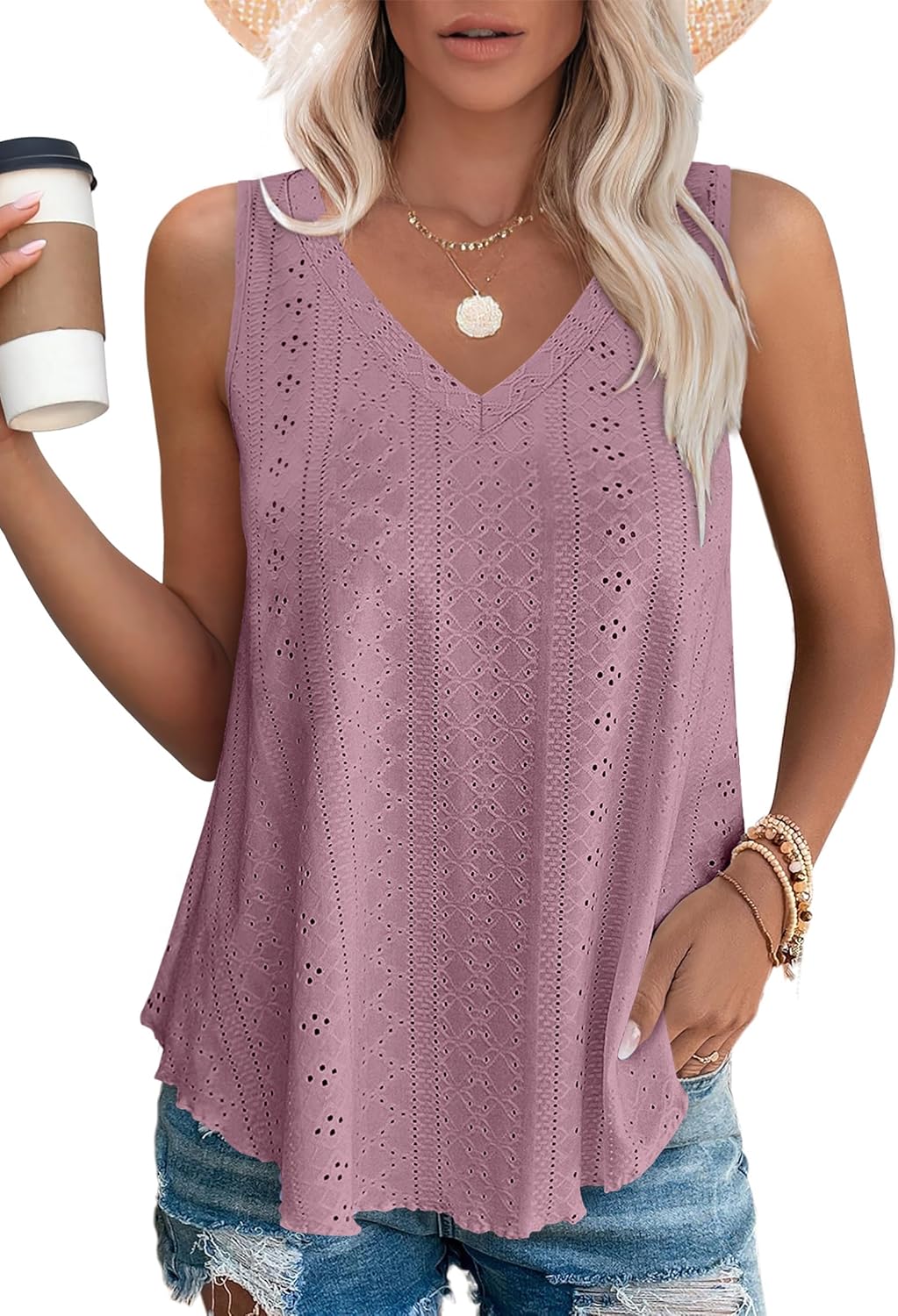 OFEEFAN Womens Tank Tops V Neck Sleeveless Flowy Loose Fit Basic Casual Summer Tops