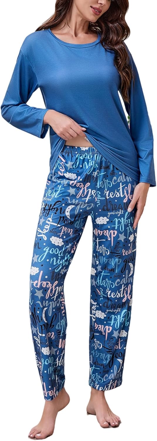 NoirEle Womens Pajama Set, Long Sleeve Pajamas Top and Pants Soft Pjs Set Soft Loungewear with Pockets,S-2XL