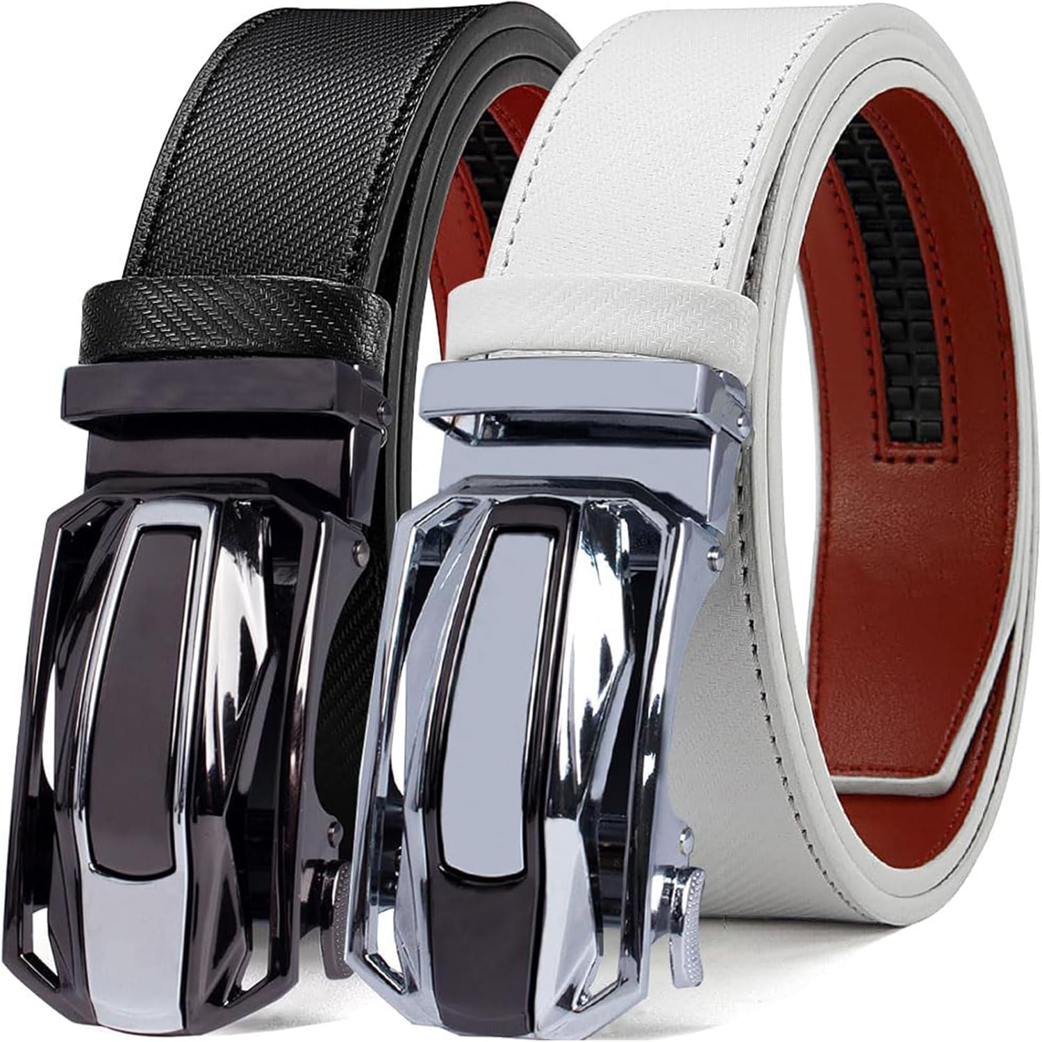 DOOPAI Men's Ratchet Leather Belt Set - 2 Pack Sliding Belt Adjustable For Gift Mens Dress Casual 1 3/8",Cut for Fit
