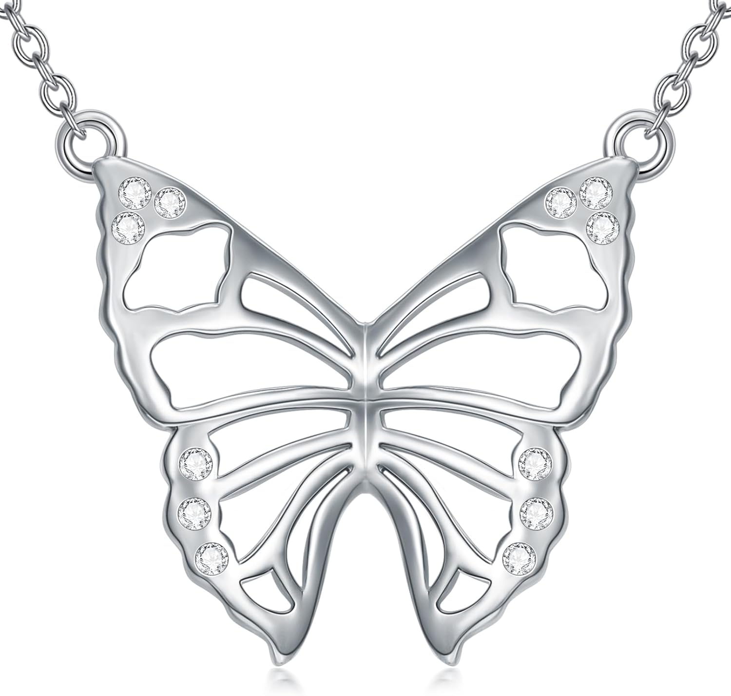 Diamond Butterfly Necklace for Women 925 Sterling Silver Lab Grown Diamond Butterfly Pendant Valentine's Jewelry Gifts for Women Mother (D color, VVS clarity)