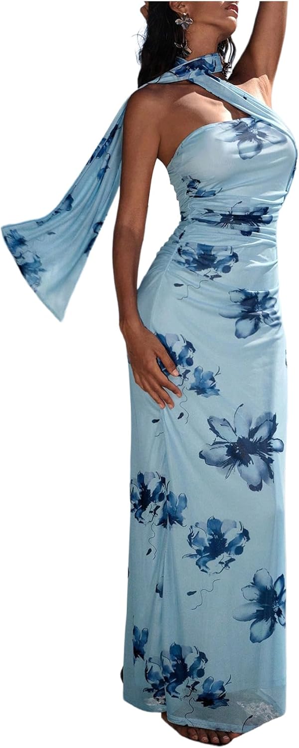 BIRW Summer Dresses for Women 2026 Casual Floral Halter Neck A-line Beach Vacation Sundresses