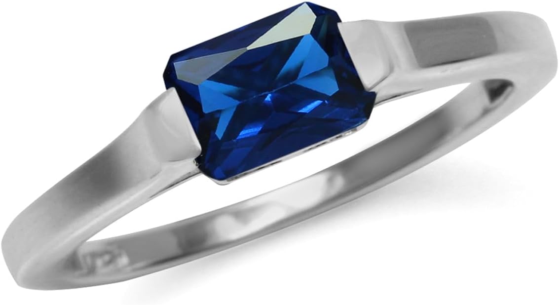 Silvershake Half Bezel Set Octagon Shape Gemstone White Gold Plated or Yellow Gold Plated 925 Sterling Silver Minimalist East-West Solitaire Promise Ring Jewelry for Women