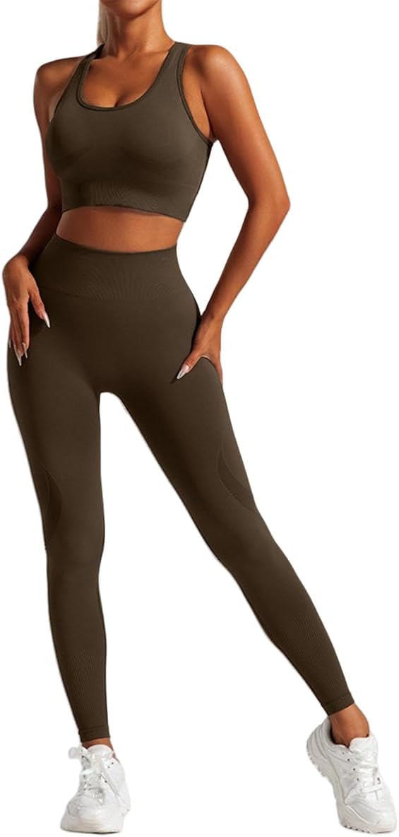 2 Piece Workout Sets for Women Sports Bras and High Waisted Leggings Yoga Outfits Set for Women