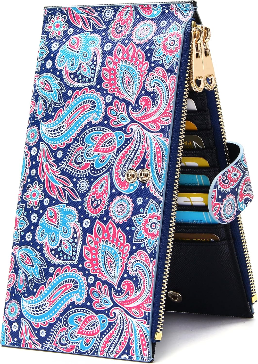 Womens Slim Wallet RFID Blocking Bifold Credit Card Holder Leather Multi Card Organizer with 2 Zipper Pockets