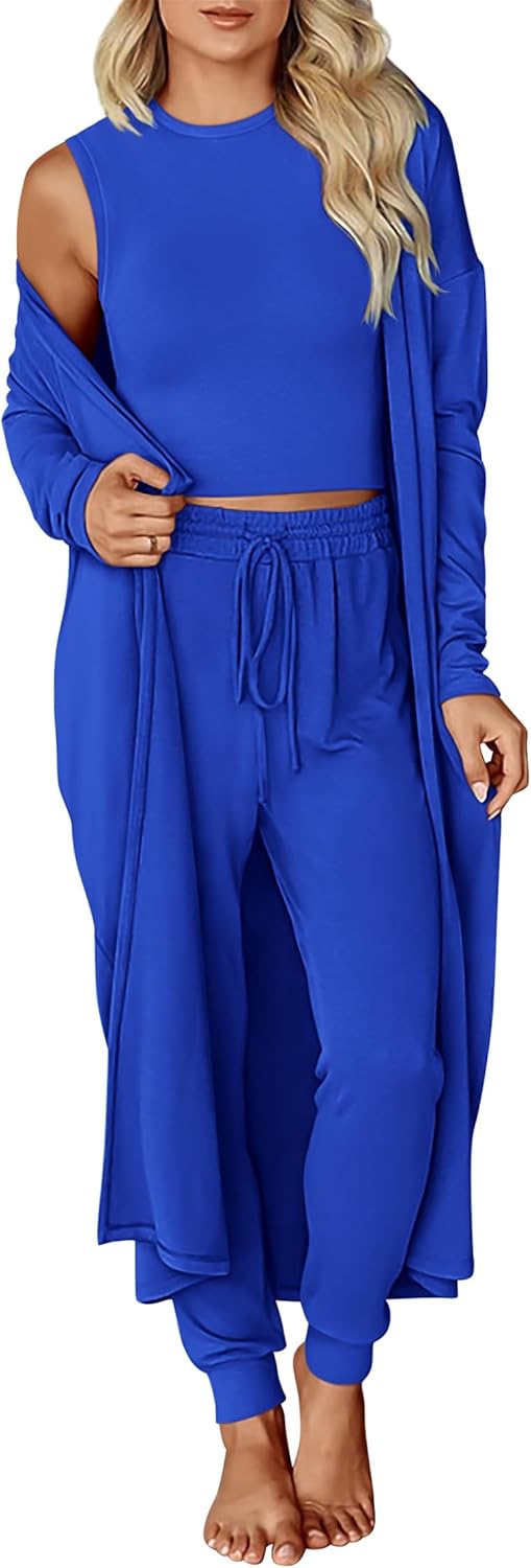 KIRUNDO 3 Piece Lounge Sets for Women Airport Travel Vacation Outfits Spring Cardigan Matching Sleeveless Top Jogger Pants