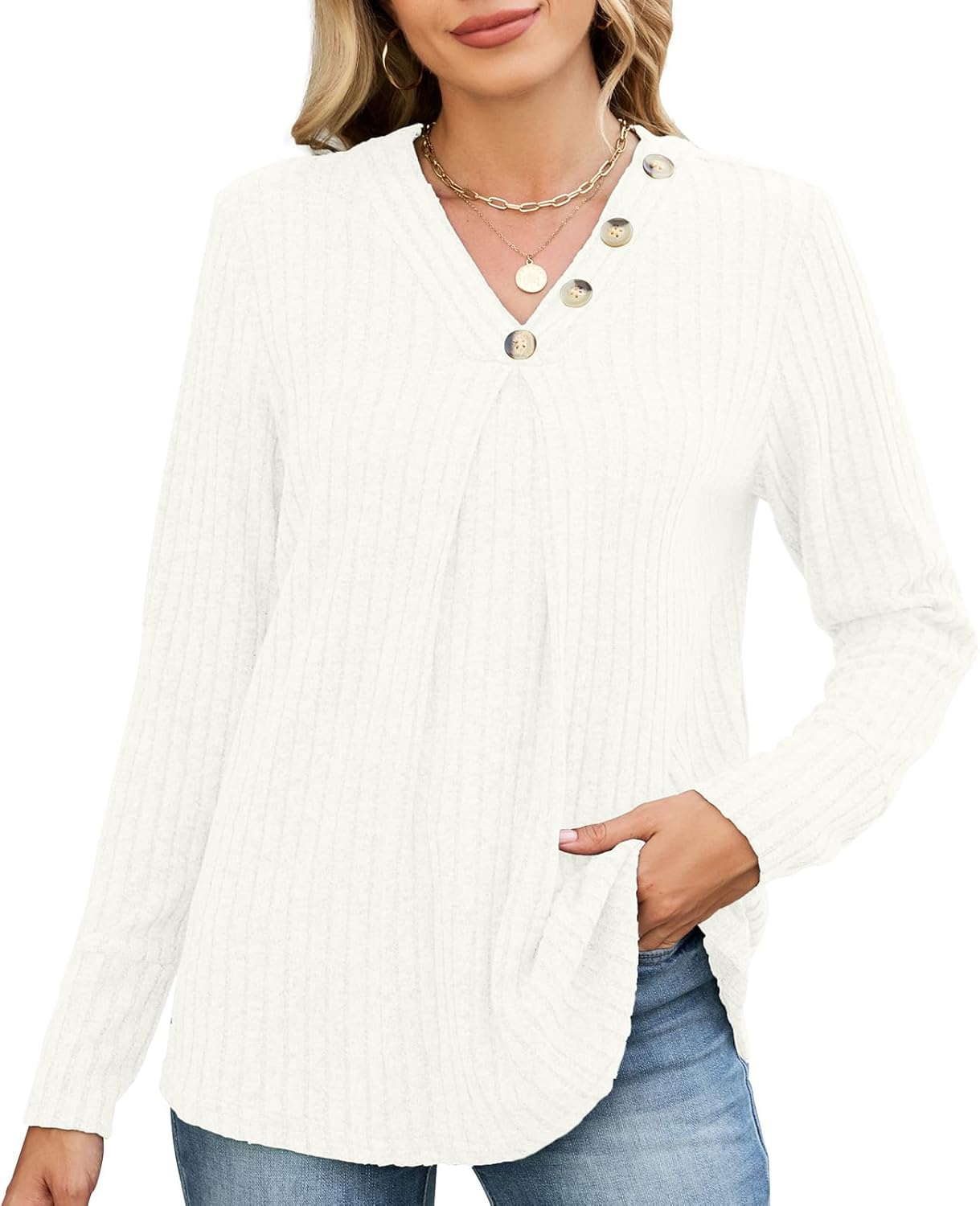 Women's Sweaters Long Sleeve V Neck Tops Shirt Casual Loose Button Pullover Jumper Comfy Autumn Top