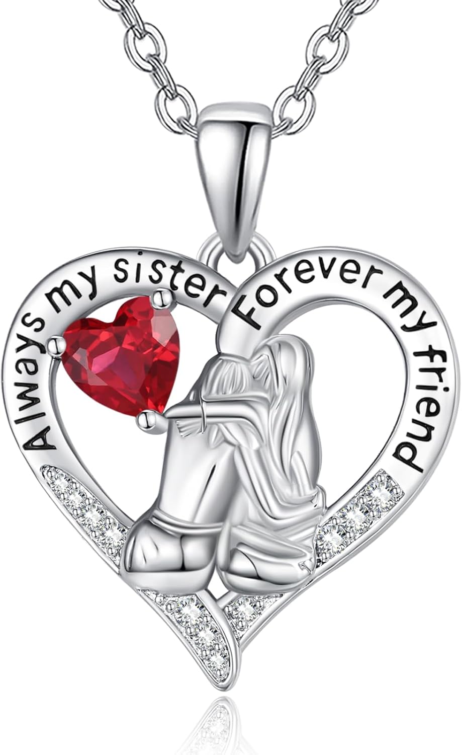 Sisters White Gold Necklaces for Women, Birthstone Pendant Jewelry Birthday Gift for Women Her Sister Bestie Close Friend BFF