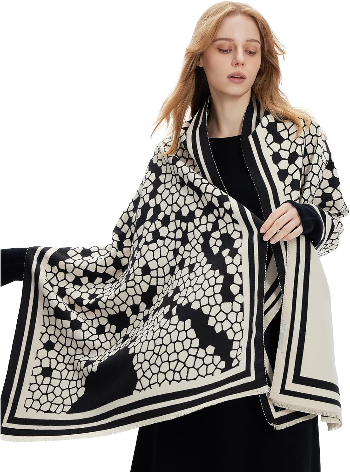 zero season Pashmina Shawl Wrap for Women Printed Scarf for Evening Dress, Wedding, Bridesmaid Gift, Formal Event, Blanket Poncho Cape Geometric Pattern