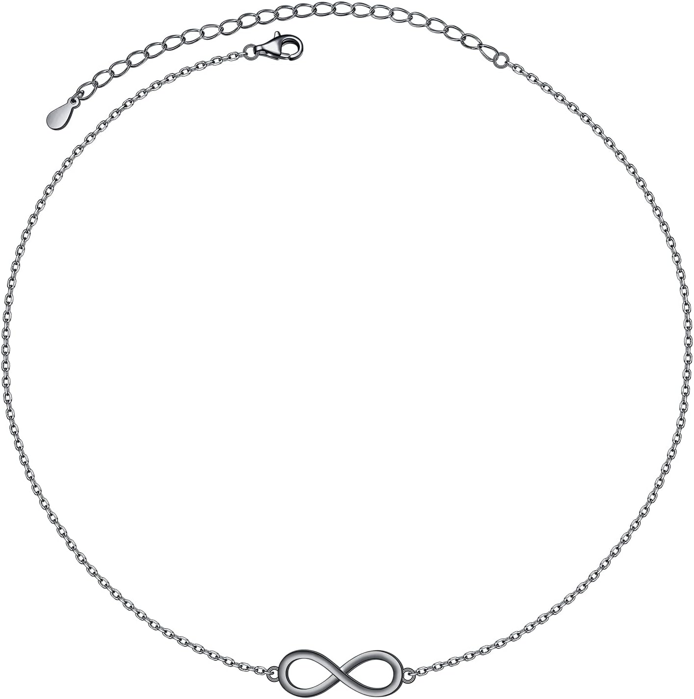 DAOCHONG S925 Sterling Silver Choker Short Dainty Necklace Black Infinity Pendant for Women Jewelry