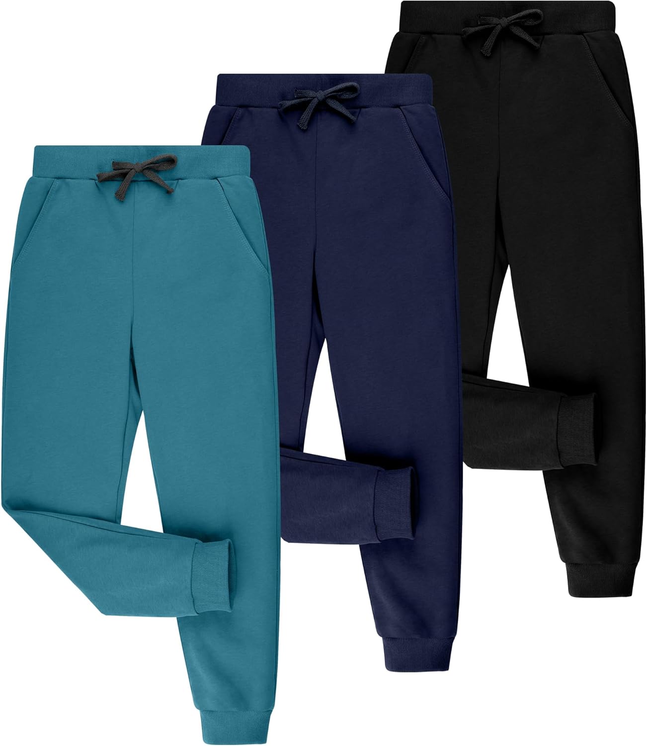 BIG ELEPHANT 3 Pack Boys Sweatpants, Youth Cotton Athletic Joggers Pants with Pockets and Drawstring