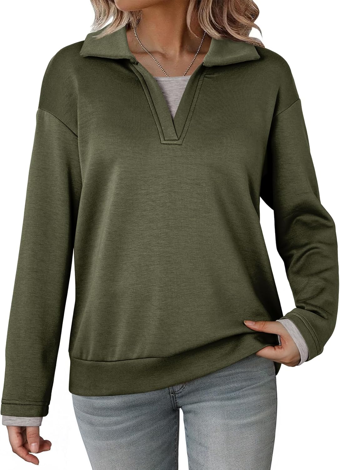 Dokotoo Sweatshirt for Women Long Sleeve V Neck Color Block Oversized Casual Pullover Sweatshirts Tops