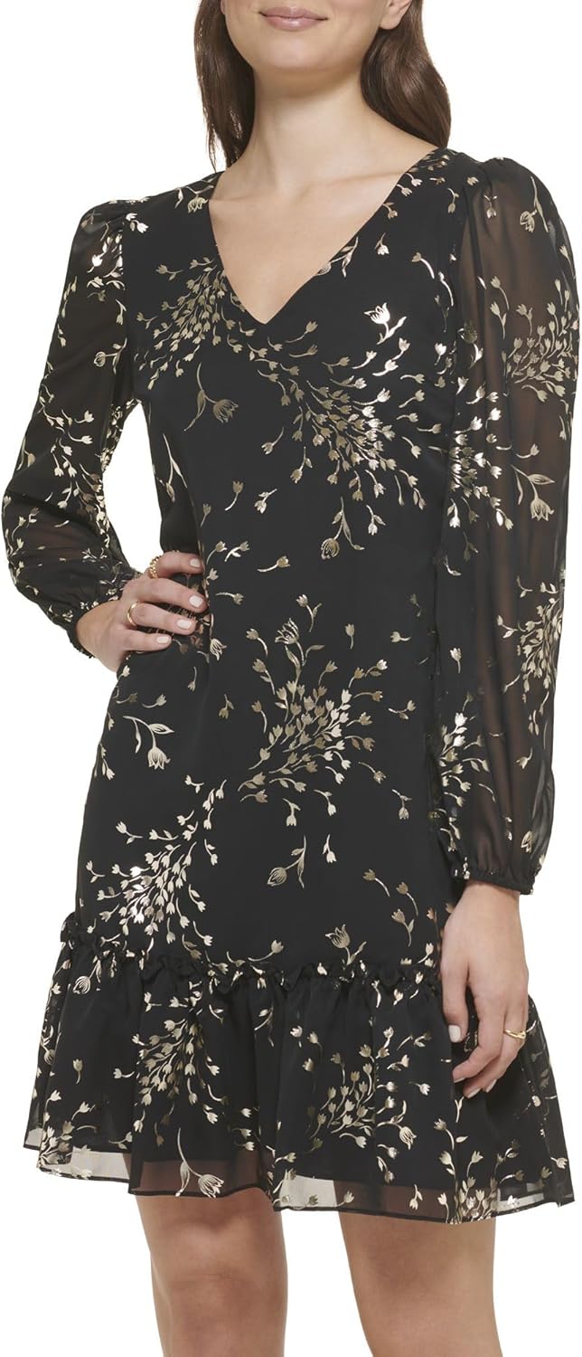 Kensie Womens Balloon Sleeve Ruffle Hem Mini Dress