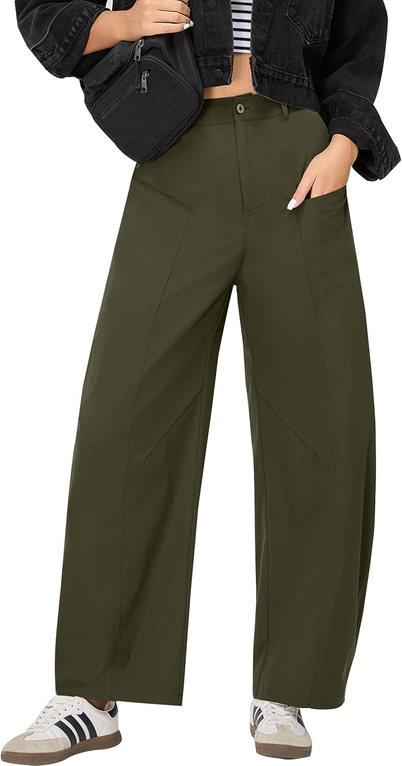 Blooming Jelly Womens Baggy Barrel Pants Wide Leg Casual Halara Pants Loose Trousers with Pockets