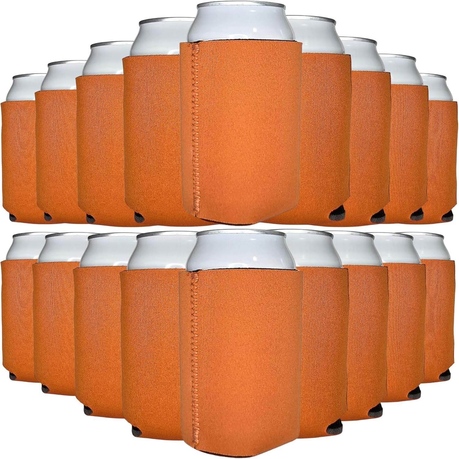 TahoeBay Neoprene Can Cooler Sleeves (25-Pack) Bulk Blank Sublimation Blanks for Vinyl Regular Size Plain Beer Coolers for Soda Cans & Bottles Black, White, Solid Color Set (Texas Orange)