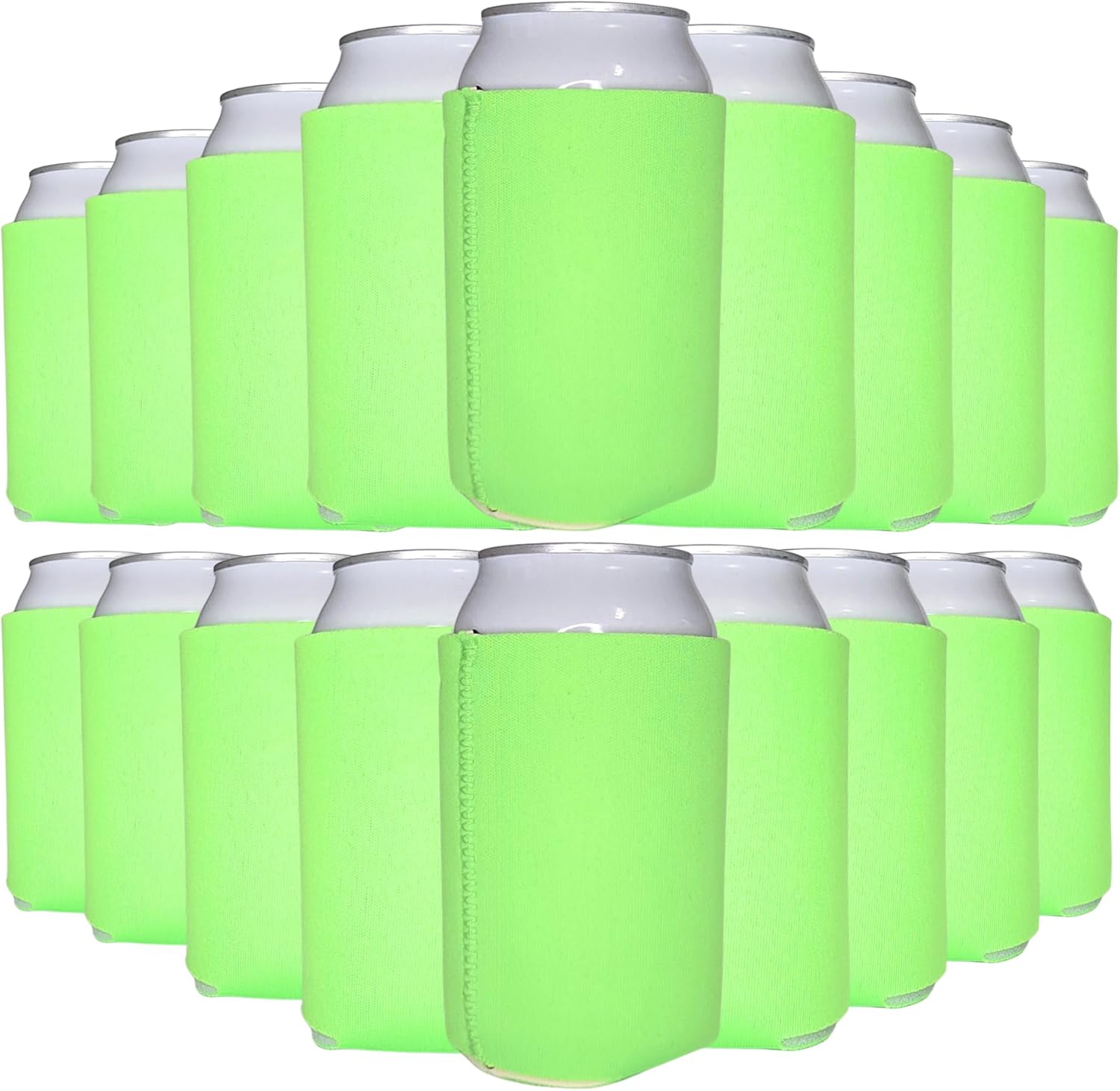 TahoeBay Neoprene Can Cooler Sleeves (25-Pack) Bulk Blank Sublimation Blanks for Vinyl Regular Size Plain Beer Coolers for Soda Cans & Bottles Black, White, Solid Color Set (Neon Green)