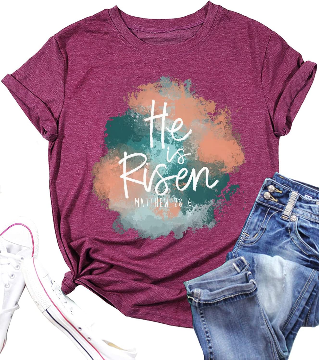 He is Risen Easter Shirt for Women Funny Letter Print Christian Tshirt Casual Short Sleeve Blessed Tops Shirts