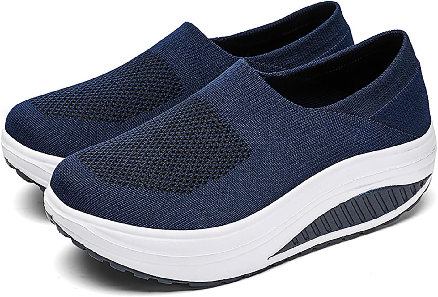 Women's Knitted Platform Slip On Walking Sneakers,Comfort Lightweight Arch Support Non Slip Casual Mesh Breathable Workout Work Shoes