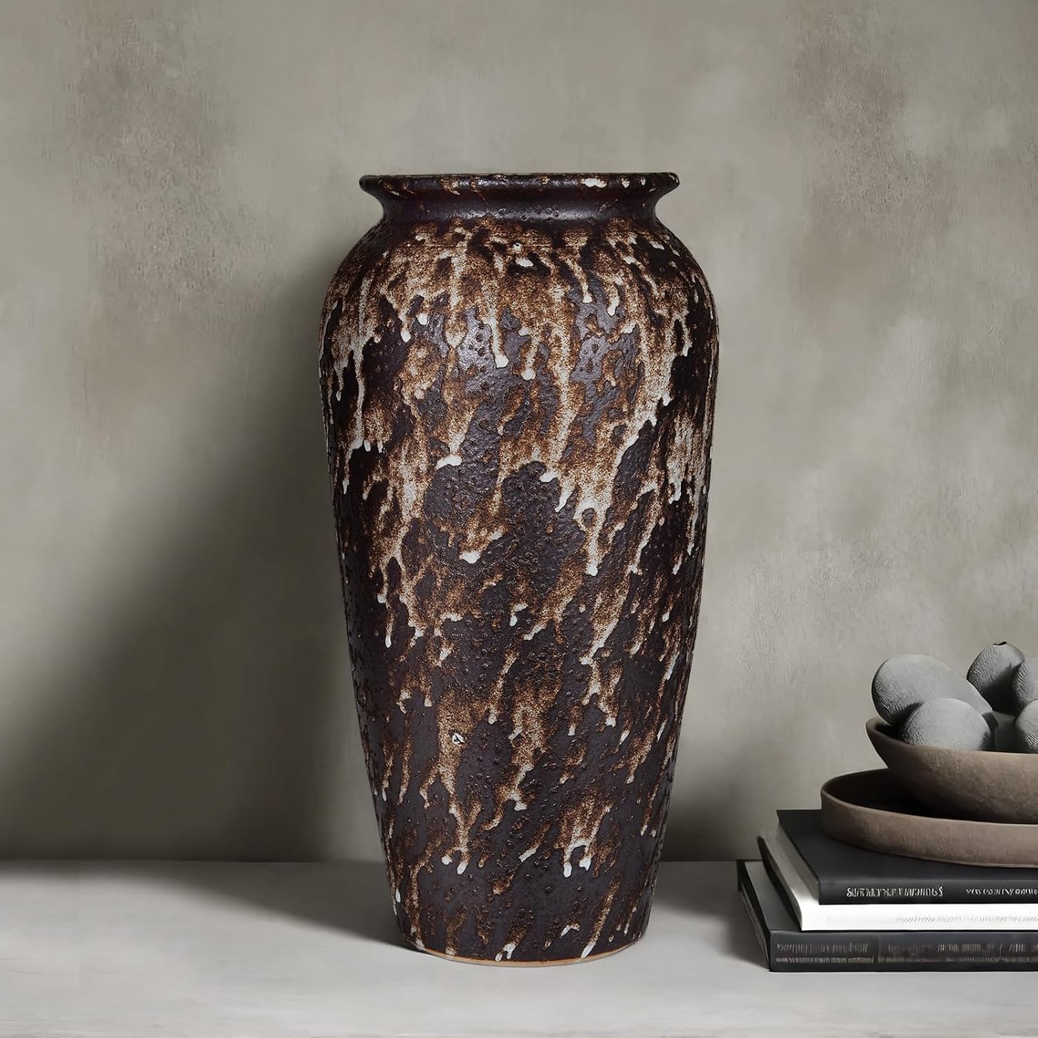 Ceramic Rustic Floor Vase, 12" Large Farmhouse Flower Vase for Home Decor, Vintage Vase Decor for Living Room Centerpieces,Office,Housewarming,Wedding