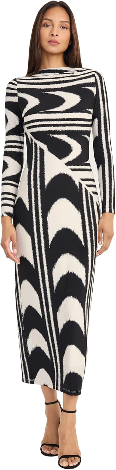 Donna Morgan Womens Long Sleeve Bodycon Geometric Print Ankle Length Cocktail Party Dresses