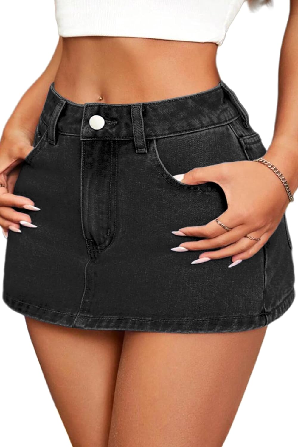 ELLEVEN Women’s Low Rise Mini Denim Skort with Pockets High Stretch Jean Skirt Shorts Y2K Slim Fit Casual Summer