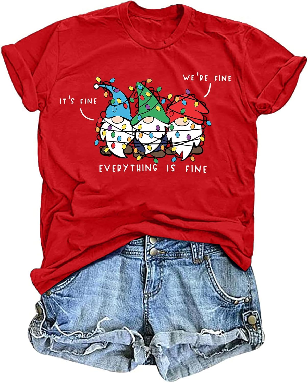 It's Fine We're Fine Everything's Fine Tshirt Women Christmas Gnomes Shirt Xmas Casual Holiday Tops