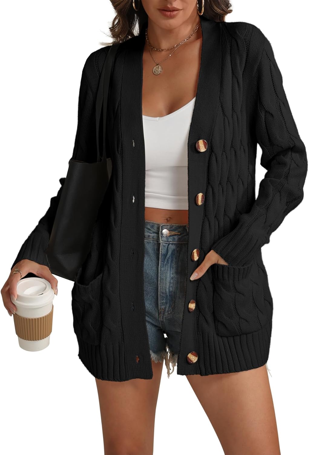 ATHMILE Cardigan Sweaters for Women Fashion Open Front Cardigans 2026 Fall Outfits Womens Long Sleeve Cable Knit Button Coats