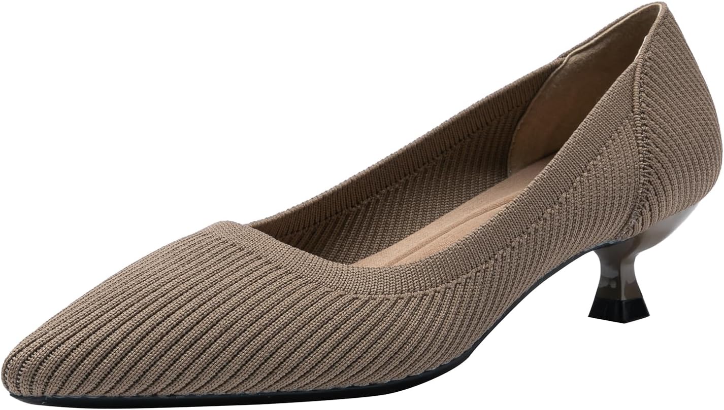 Women's Knit Kitten Heel Pumps Fashion Pointed Toe Shallow Mouth Slip On Comfortable Heels Casual Work Office Business Wedding Formal Dress Shoes
