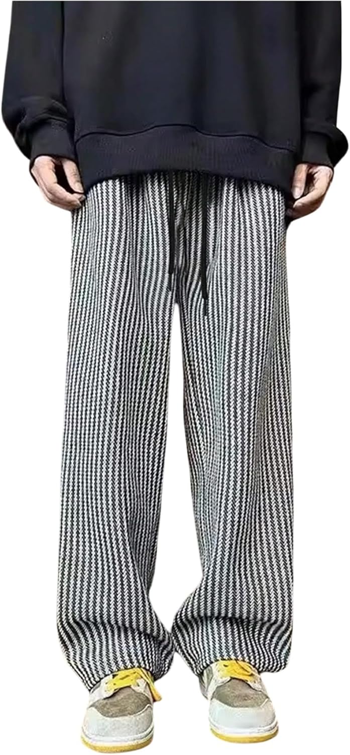 OYOANGLE Men's Textured Striped Wide Leg Pants Drawstring Waist Loose Casual Lounge Trousers