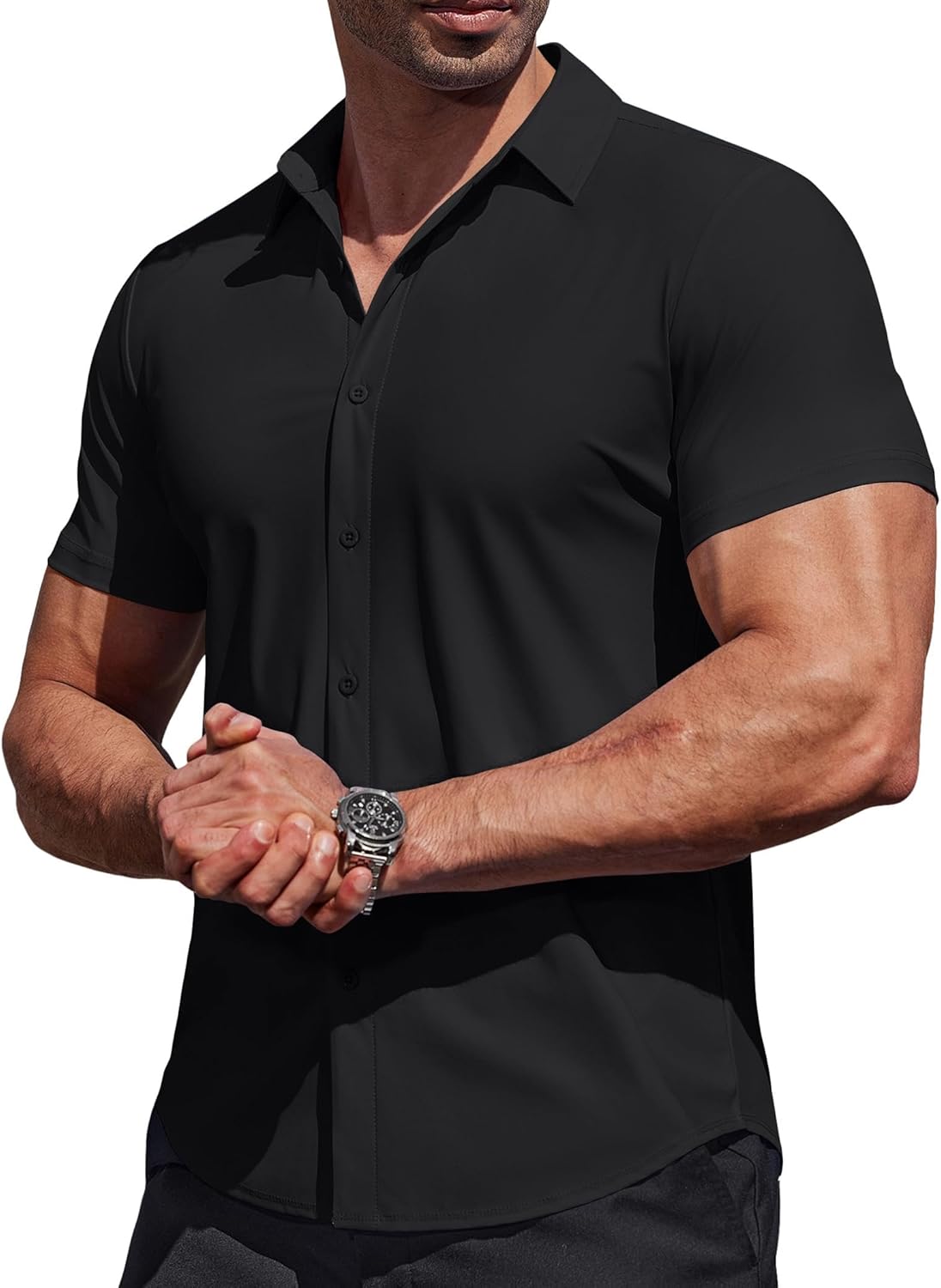 COOFANDY Mens Muscle Fit Dress Shirts Stretch Wrinkle Free Short Sleeve Button Down Shirt Casual Solid Untucked Shirt