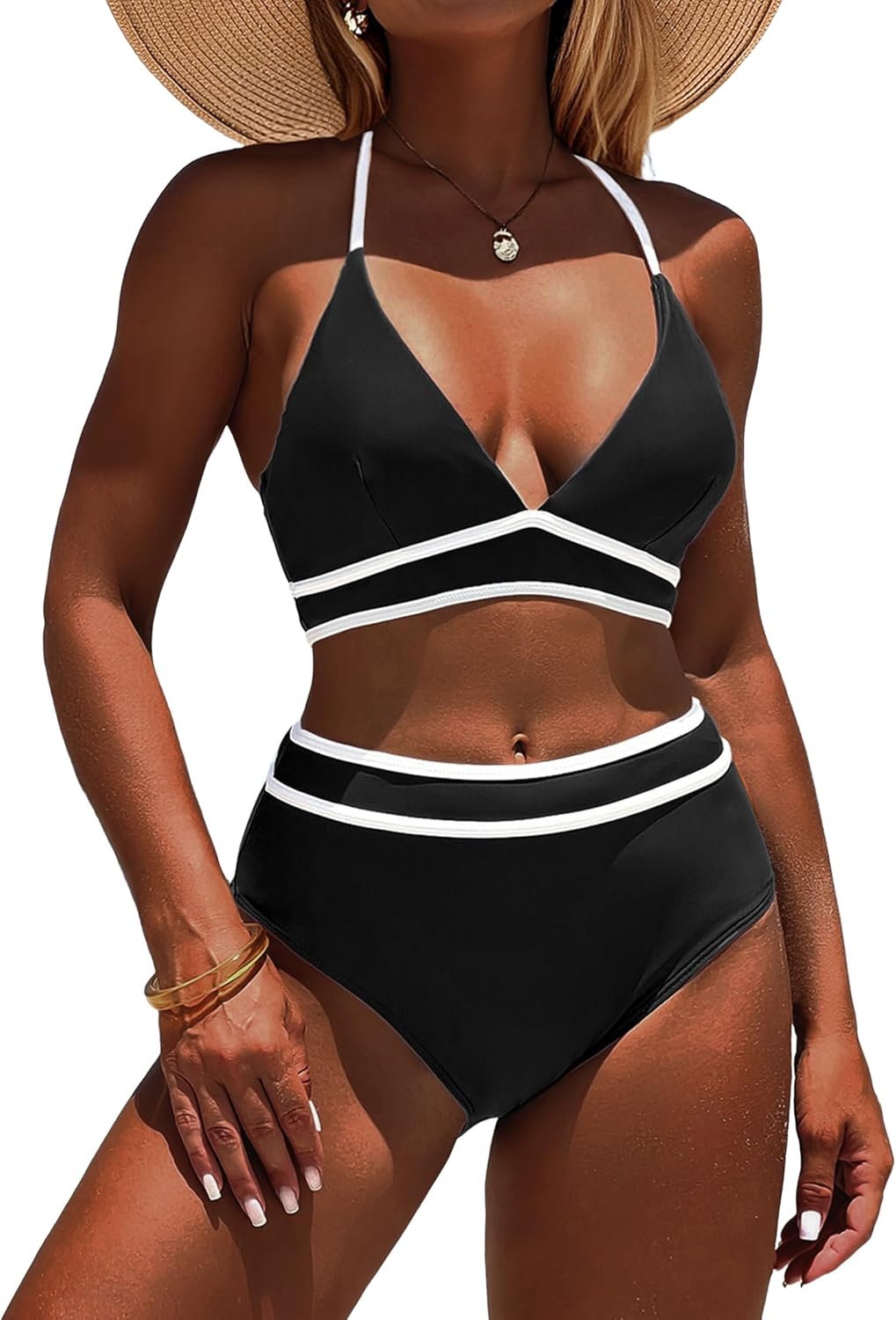 ZAFUL Women's Sheer Mesh Bikini Set High Waisted Tummy Control 2 Piece Tankini Swimsuit Bathing Suit