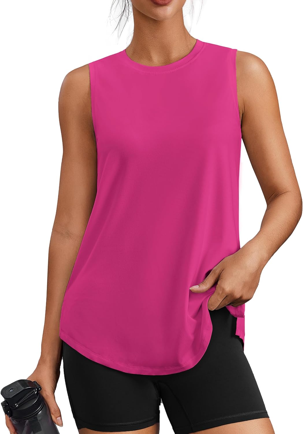 PINSPARK Workout Tops for Women Sleeveless Athletic Tank Tops UPF 50+ Running Tanks with Side Slits Loose Fit Gym Yoga Shirt
