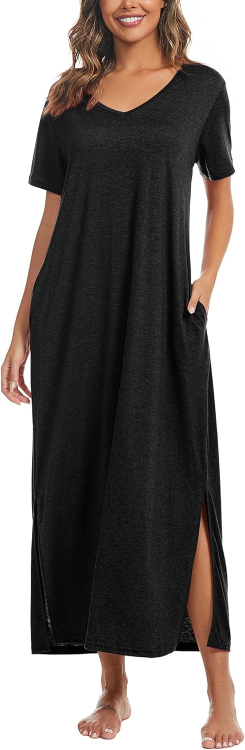 Marvmys Women Short Sleeve Nightgown Cotton Long Nightshirts with Pocket