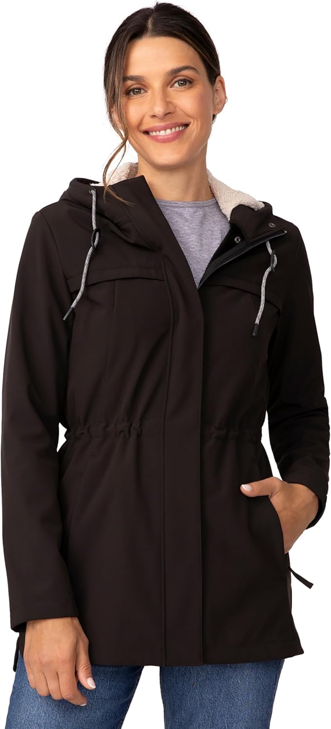 Free Country Women's Softshell Jacket Fleece Lined Warm Insulated Hooded Water & Wind Resistant Coat for Outdoor-Long Super